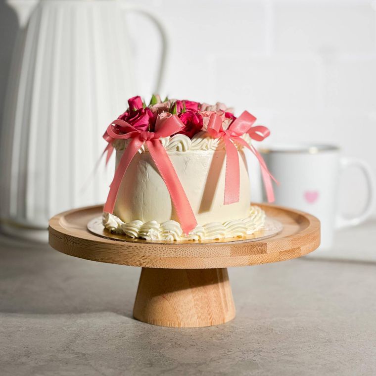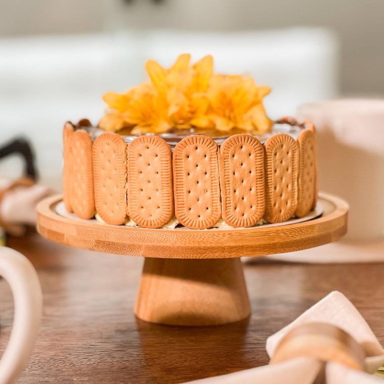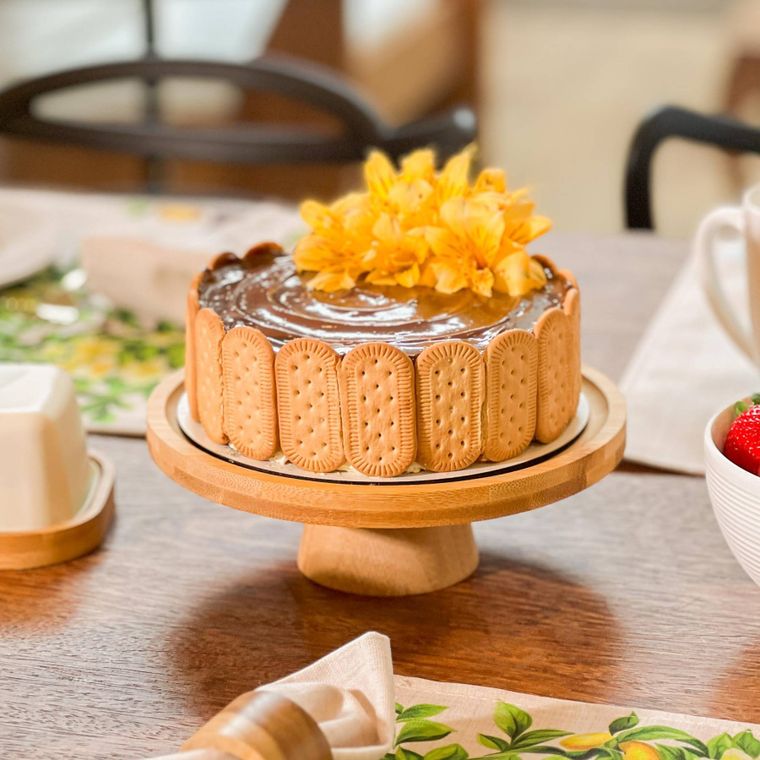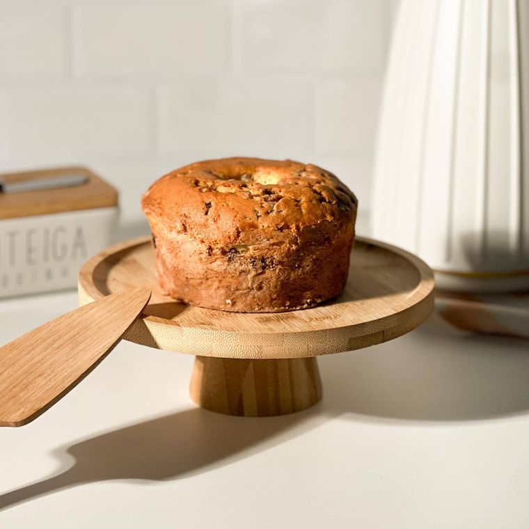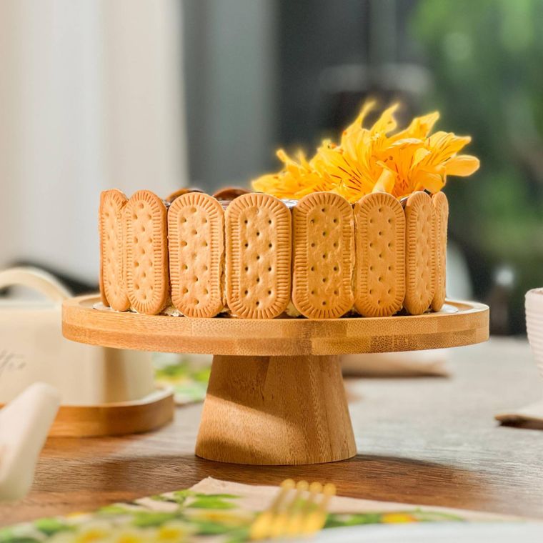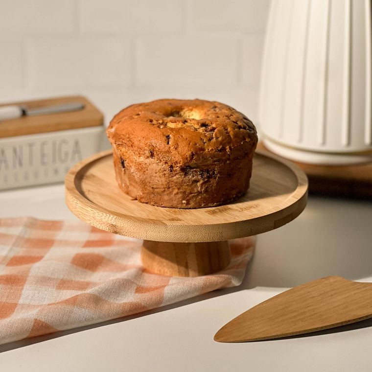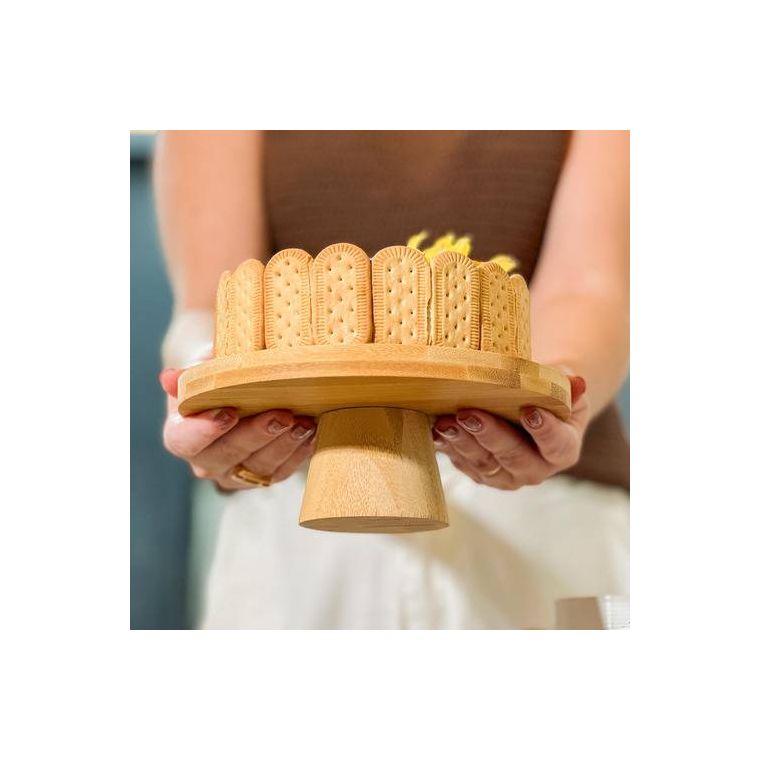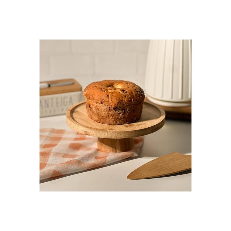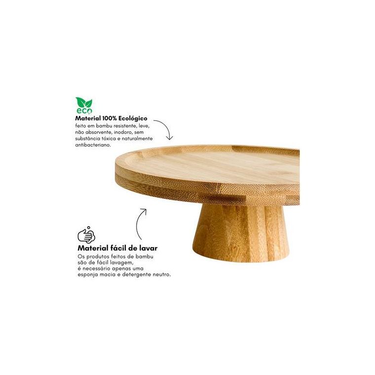 Prato Para Bolo Em Bambu Com Pé 20x7cm Lyor Redondo Boleira
