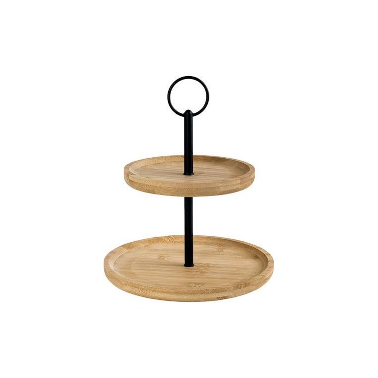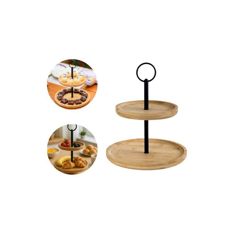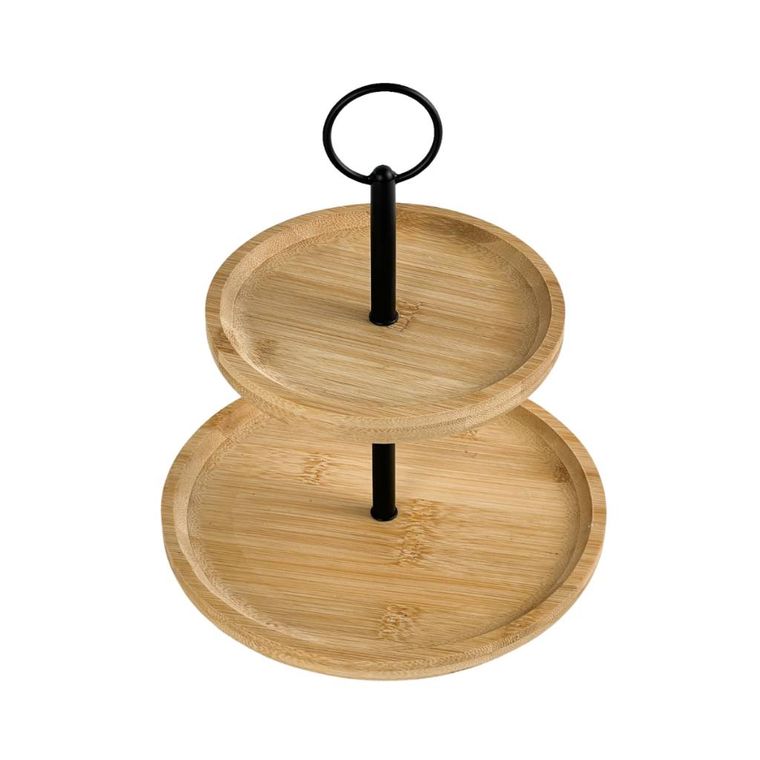 Suporte para Doces 2 Andares em Bambu e Metal - 20cm