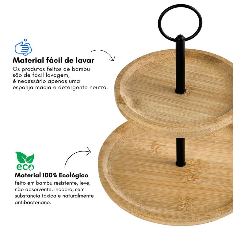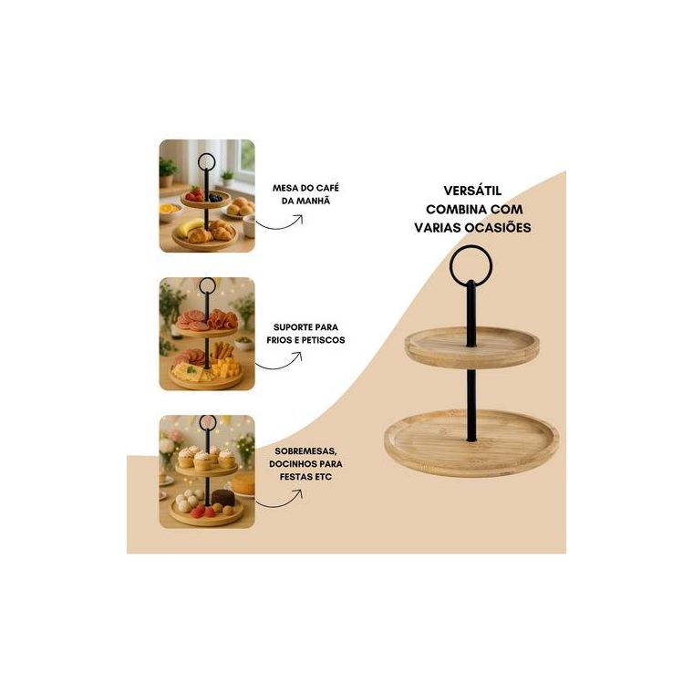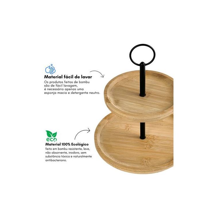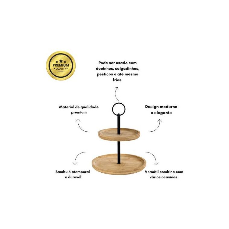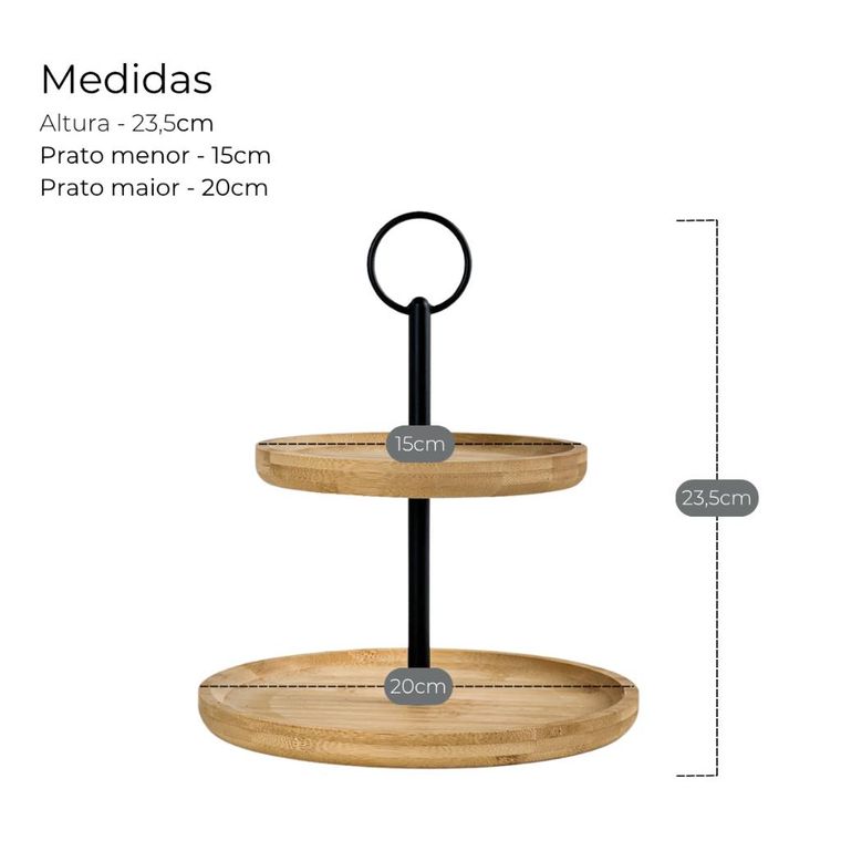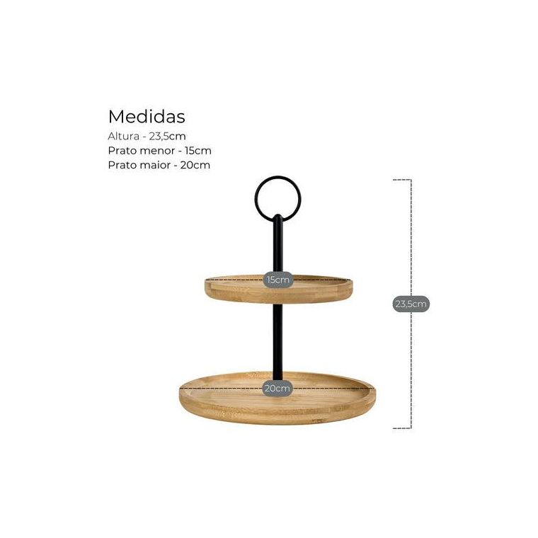 - Contém - 1 Suporte para Doces 2 Andares em Bambu e Metal - 20cm