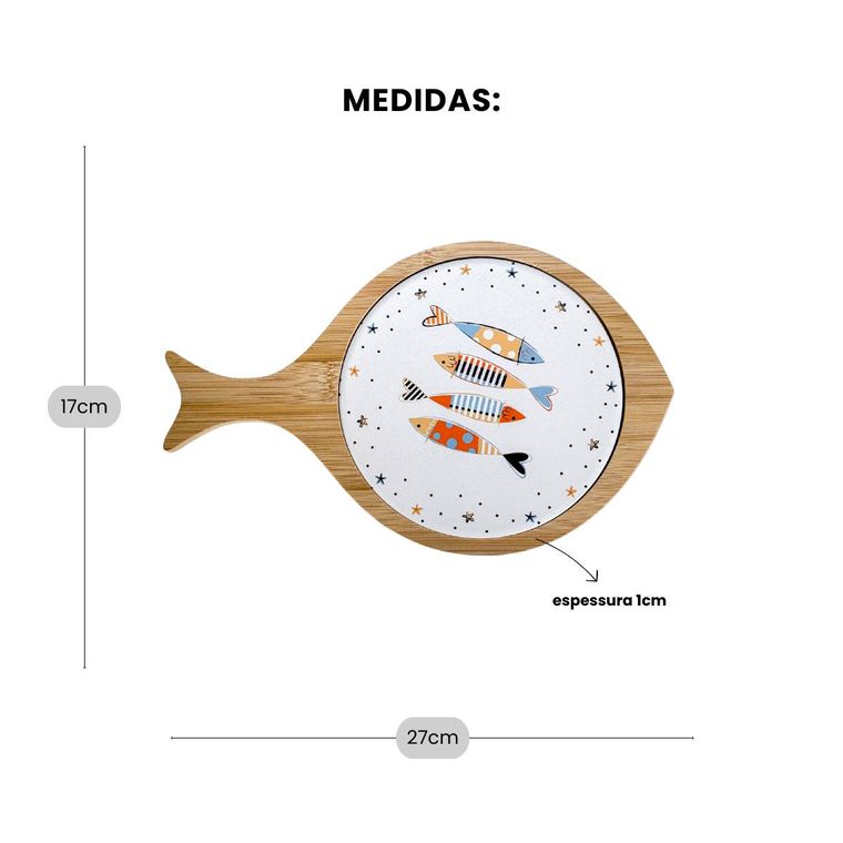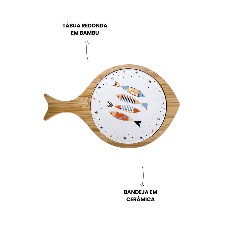 - Contém - 1 Tábua Formato de Peixe em Bambu e Cerâmica - Coleção Peixes