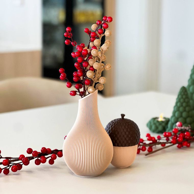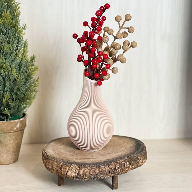 Com design moderno e acabamento texturizado, este vaso é a peça perfeita para quem busca estilo e sustentabilidade. Produzido em PLA, um material ecológico derivado de fontes renováveis, ele combina leveza, resistência e um visual sofisticado. Seu formato orgânico e a textura canelada em tom Bege fosco trazem um toque contemporâneo e natural à decoração, ideal para compor ambientes com elegância — seja com flores secas, artificiais ou como peça decorativa solo.