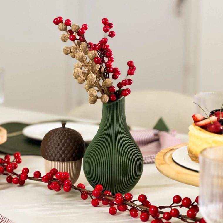 Com design moderno e acabamento texturizado, este vaso é a peça perfeita para quem busca estilo e sustentabilidade. Produzido em PLA, um material ecológico derivado de fontes renováveis, ele combina leveza, resistência e um visual sofisticado. Seu formato orgânico e a textura canelada em tom verde oliva fosco trazem um toque contemporâneo e natural à decoração, ideal para compor ambientes com elegância — seja com flores secas, artificiais ou como peça decorativa solo.