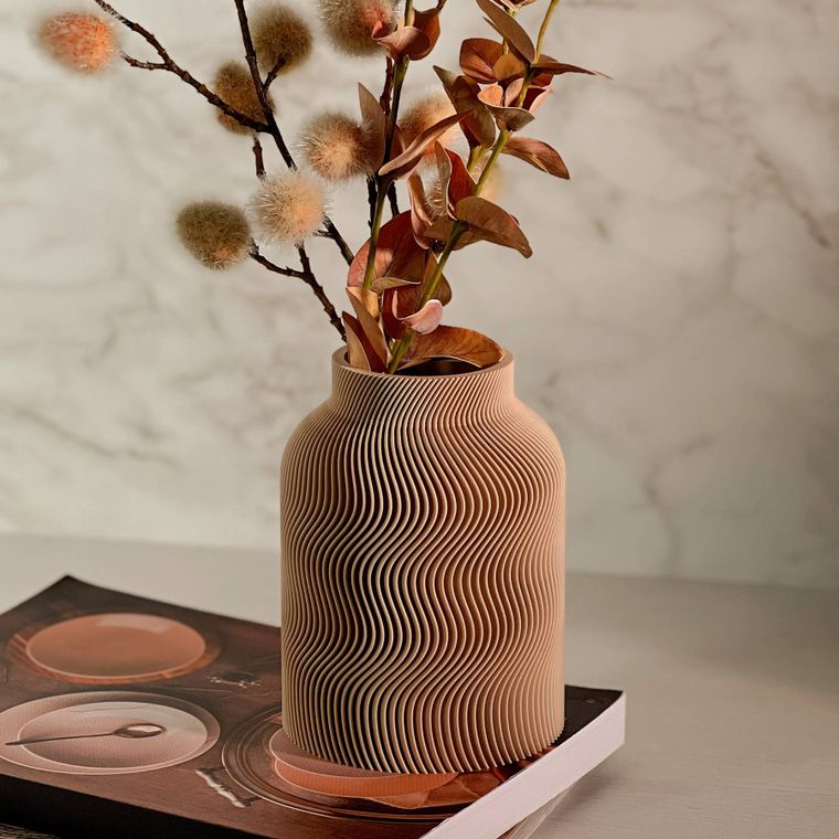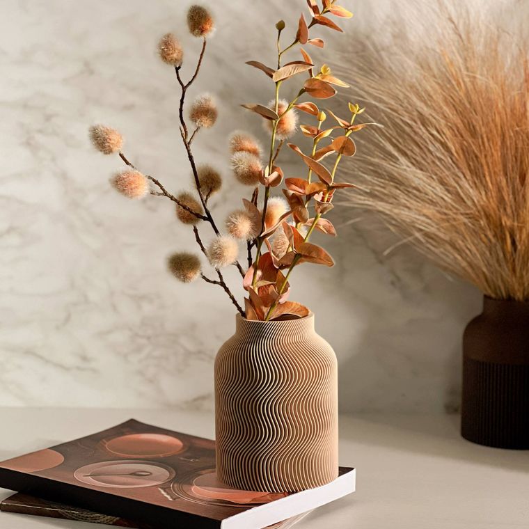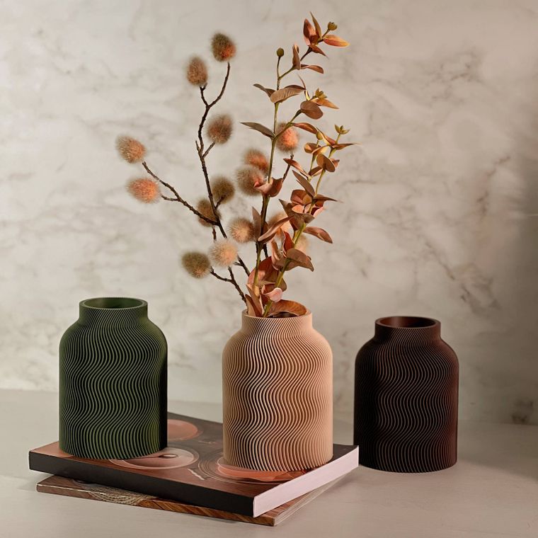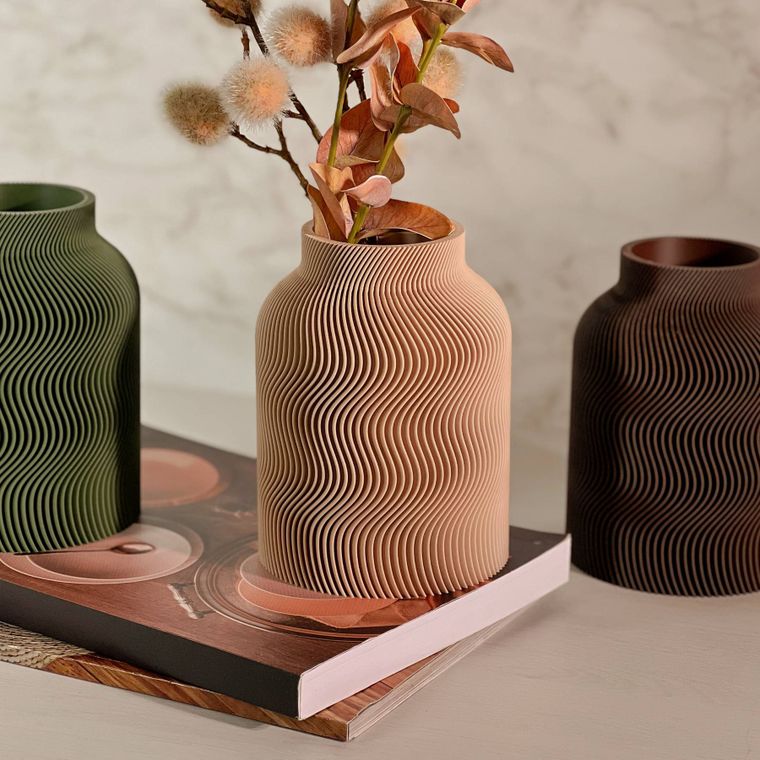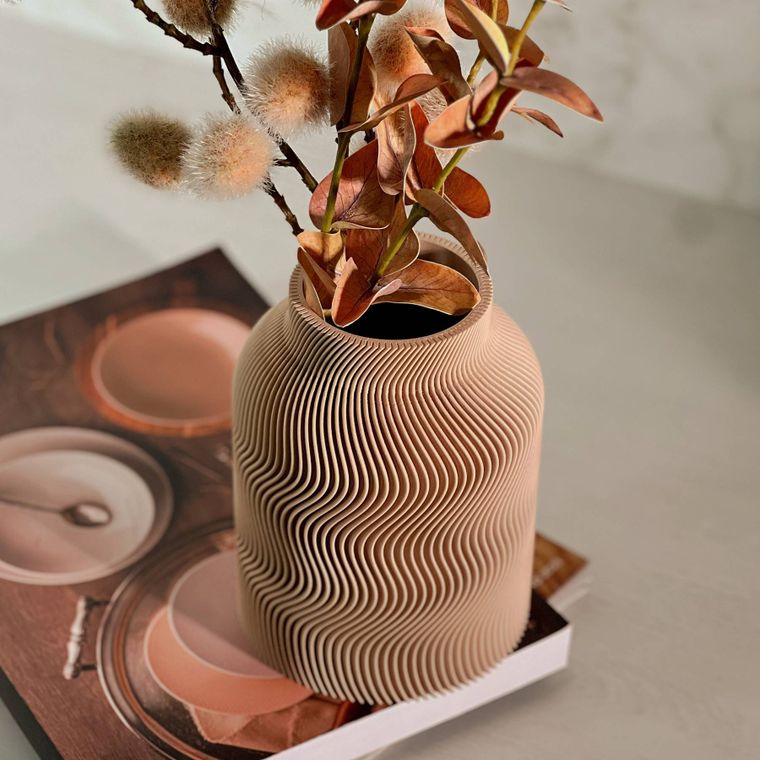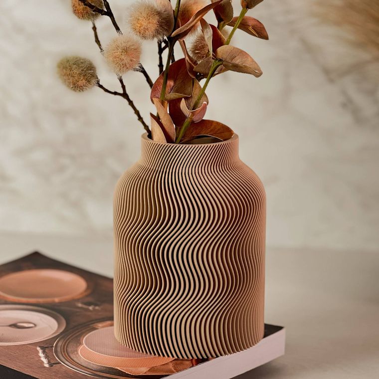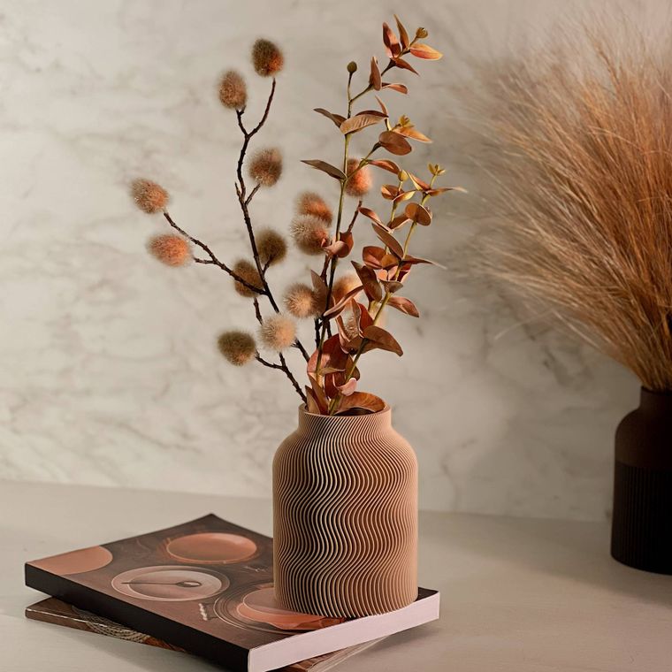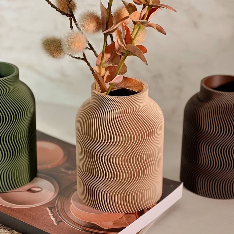 Se encante com a beleza desse vaso! Cada peça apresenta um design contemporâneo com uma silhueta sofisticada e equilibrada. A textura dupla, que se complementa, adiciona profundidade, movimento e um toque artístico que se destaca em decoração minimalista, moderna, boho entre muitas outras. Produzido em PLA, um material ecológico derivado de fontes renováveis, ele combina leveza. Ideal para compor ambientes com elegância — seja com flores secas, artificiais ou como peça decorativa solo.