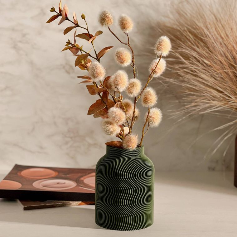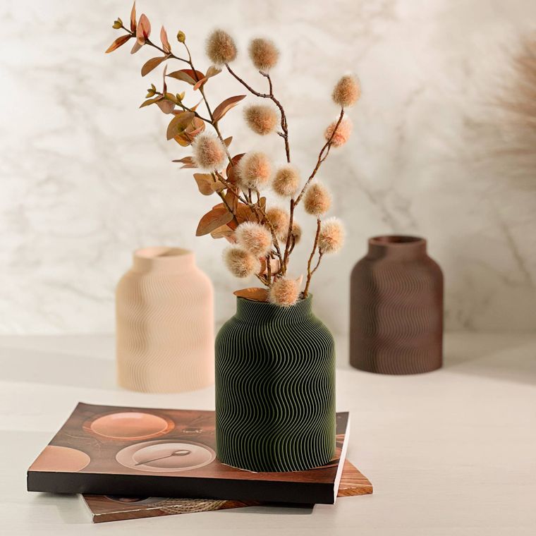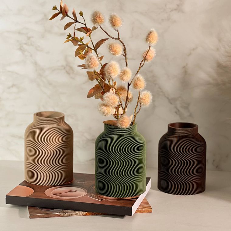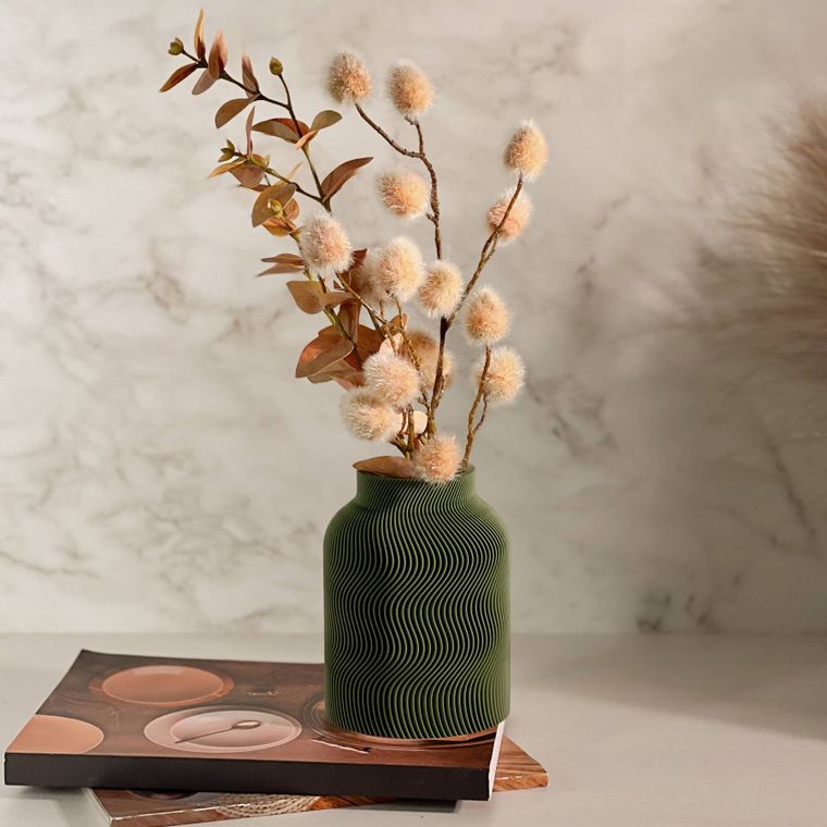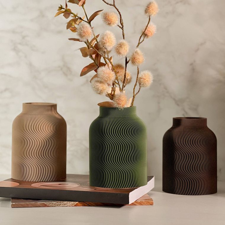 Se encante com a beleza desse vaso! Cada peça apresenta um design contemporâneo com uma silhueta sofisticada e equilibrada. A textura dupla, que se complementa, adiciona profundidade, movimento e um toque artístico que se destaca em decoração minimalista, moderna, boho entre muitas outras. Produzido em PLA, um material ecológico derivado de fontes renováveis, ele combina leveza. Ideal para compor ambientes com elegância — seja com flores secas, artificiais ou como peça decorativa solo.