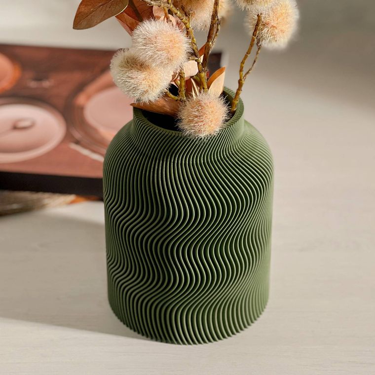 Vaso Canelado Ondas Textura Minimalista - Verde
