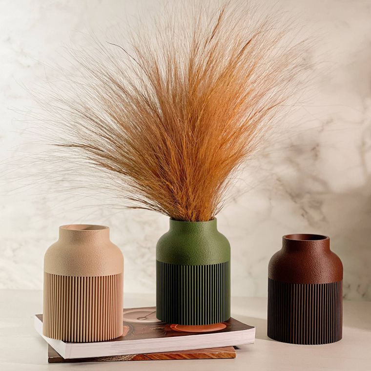 Se encante com a beleza desse vaso! Cada peça apresenta um design contemporâneo com uma silhueta sofisticada e equilibrada. A textura dupla, que se complementa, adiciona profundidade, movimento e um toque artístico que se destaca em decoração minimalista, moderna, boho entre muitas outras. Produzido em PLA, um material ecológico derivado de fontes renováveis, ele combina leveza. Ideal para compor ambientes com elegância — seja com flores secas, artificiais ou como peça decorativa solo.