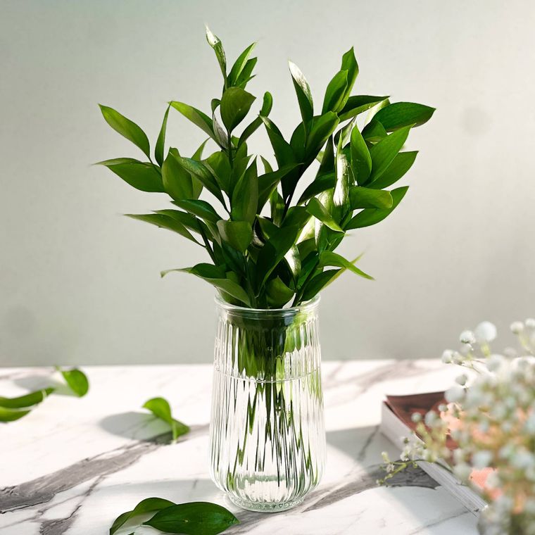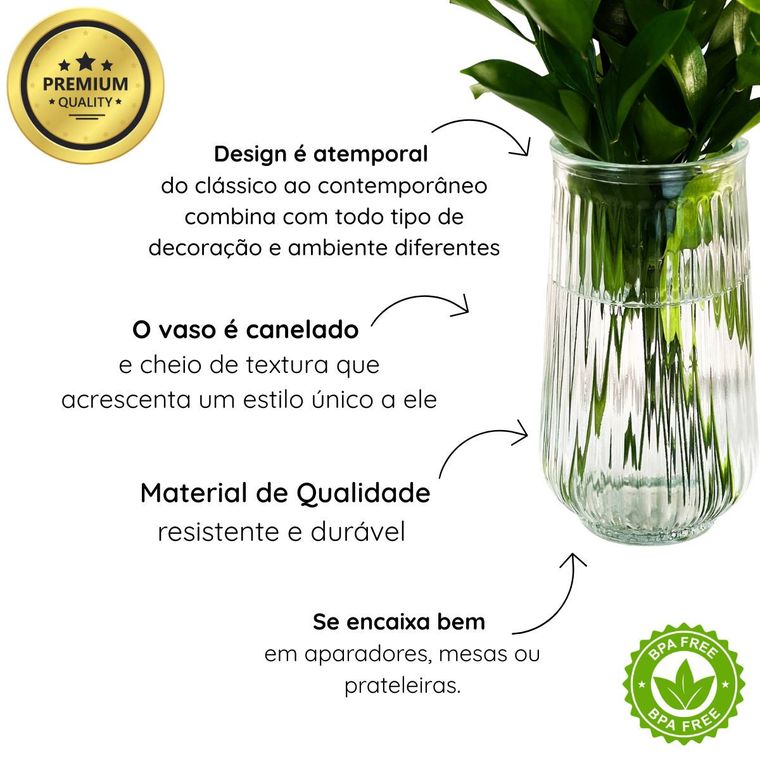 - Contém - 1 Vaso de Vidro Slim Canelado 15cm - 550ml