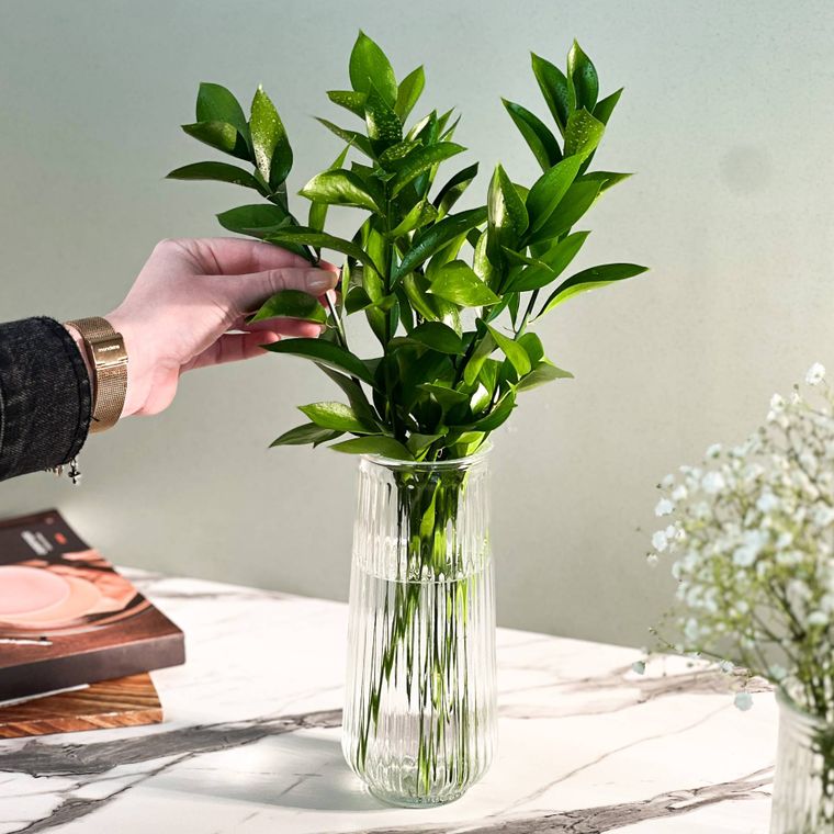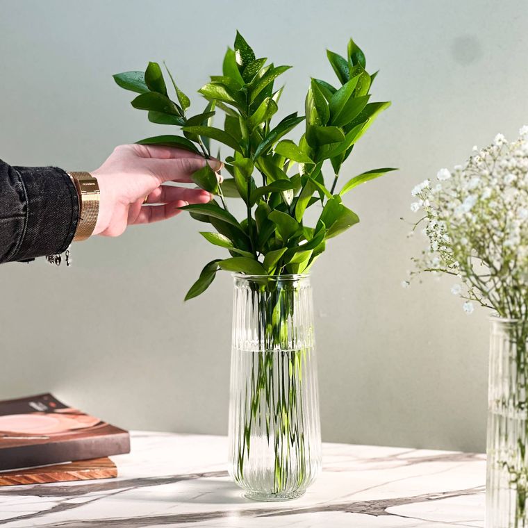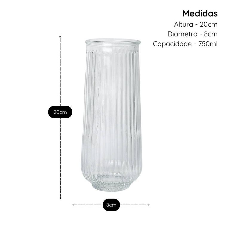 - Contém - 1 Vaso de Vidro Slim Canelado 20cm - 750ml