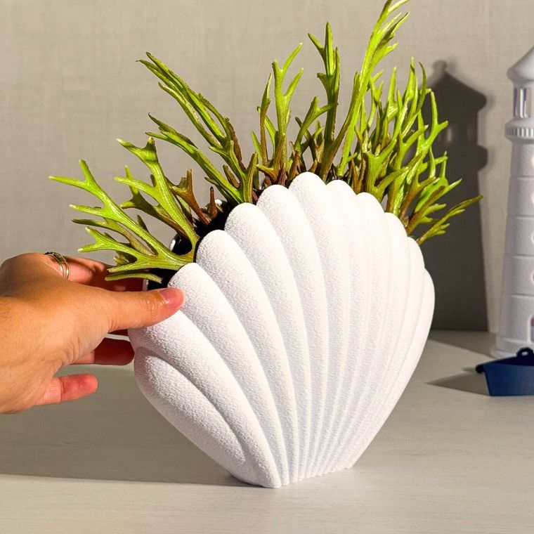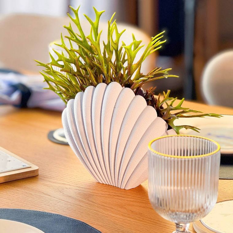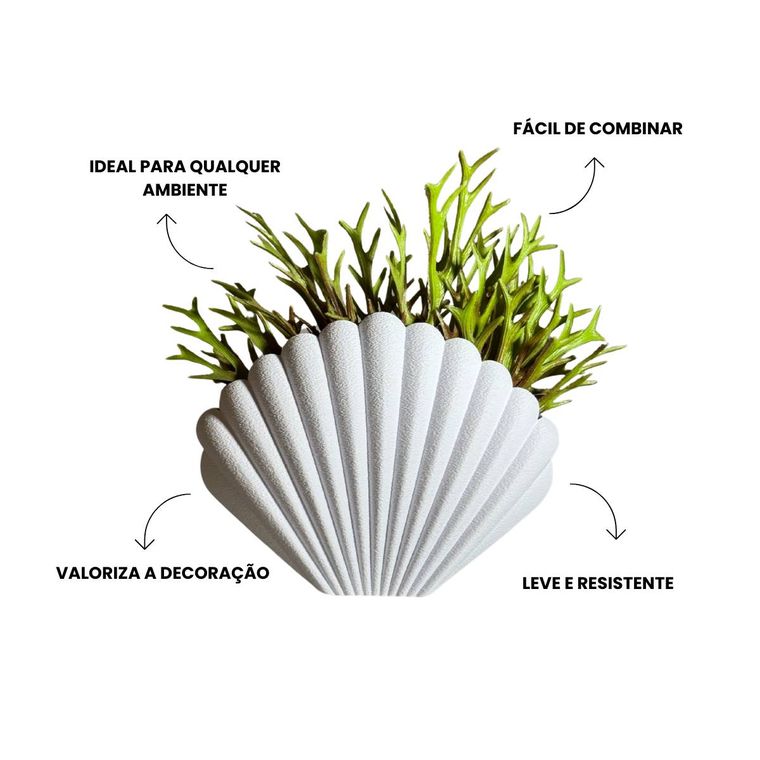 Delicado como o sussurro do mar, esse vaso em forma de concha parece ter sido colhido diretamente de uma praia. Com textura suave, ele abraça flores, folhagens ou até mesmo fica lindo sozinho, como uma pequena obra de arte. Perfeito para quem ama detalhes que contam histórias, ele traz leveza, calma e um toque poético ao ambiente na sala, no quarto ou naquele cantinho especial que pede charme. Um convite para levar a serenidade do oceano para dentro de casa. Simples, elegante e cheio de personalidade.