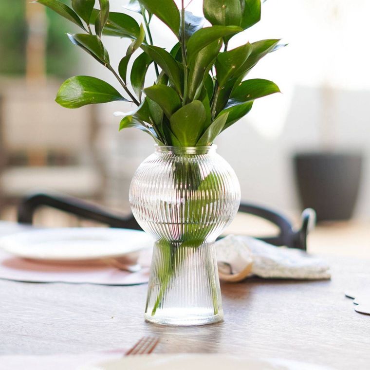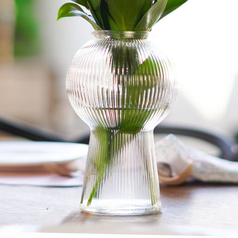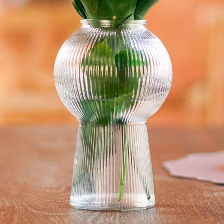 Elegante e moderno, este vaso de vidro transparente com acabamento canelado é perfeito para valorizar qualquer ambiente, trazendo sofisticação e leveza à decoração; seu design diferenciado, com formato arredondado na parte superior e base alongada, o torna ideal tanto para arranjos florais e folhagens quanto como peça decorativa independente, combinando facilmente com diversos estilos, do minimalista ao contemporâneo, e sendo uma excelente escolha para sala, quarto, escritório ou eventos.
